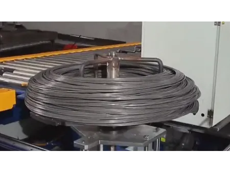 Solución integrada que combina una bobinadora de bloque muerto con tecnología avanzada de embalaje, diseñada para realizar de manera continua y eficiente el trefilado, enrollado, flejado, enfardado, pesaje y etiquetado de bobinas de alambre