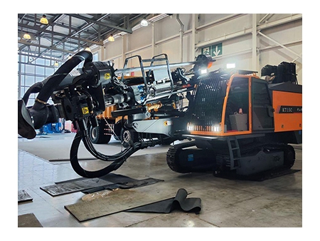 La perforadora DTH integrada KT15C es capaz de perforar agujeros verticales, inclinados y horizontales, y se utiliza principalmente en minas a cielo abierto, en la perforación de agujeros de voladura en trabajos de piedra y en la perforación de agujeros para pre-fractura. Impulsada por un motor diésel Cummins (etapa III de China), su salida de dos terminales permite operar tanto el sistema de compresión de tornillo como el sistema de transmisión hidráulica. Además, la perforadora está equipada con una viga de propulsión de aleación de aluminio de alta resistencia y un sistema hidráulico variable. Incluye un sistema automático de manejo de varillas, un módulo de junta flotante y de lubricación para el tubo de perforación, un sistema para prevenir el pegado del tubo, un sistema hidráulico de recolección de polvo seco y una cabina con aire acondicionado. También ofrece una función opcional de indicación del ángulo y la profundidad de perforación. Gracias a estas características, la perforadora destaca por su gran integridad, alto grado de automatización, eficiencia en la perforación, respeto por el medio ambiente, ahorro energético, facilidad de operación, flexibilidad y seguridad durante el transporte.