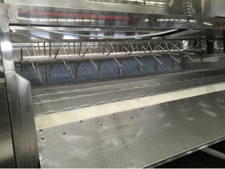 Equipado con una banda transportadora de acero inoxidable para asegurar seguridad, higiene, durabilidad y bajos costos de mantenimiento.