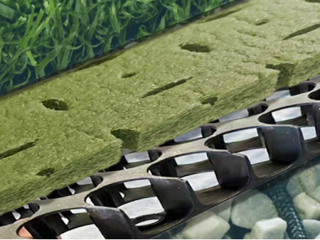 Es ideal para aplicaciones deportivas y de ocio. Para un rendimiento óptimo en condiciones especiales, se puede incorporar una base de fibra de vidrio para estabilizar aún más el sistema de soporte y mejorar la resistencia de la unión del césped.