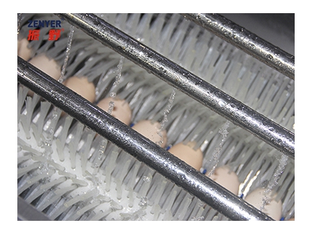 El agua de los huevos será retirada por los cepillos, luego el sistema de secado se encargará de secar completamente el agua restante de los huevos. Dependiendo de la humedad ambiental, la tasa de secado puede ser de hasta el 99%.