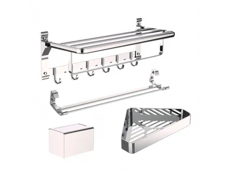 Juego de 5 piezas, de Acero Inoxidable para Baño (esquinero/portarollos/estante para toallas/toallero/escobilla de baño)